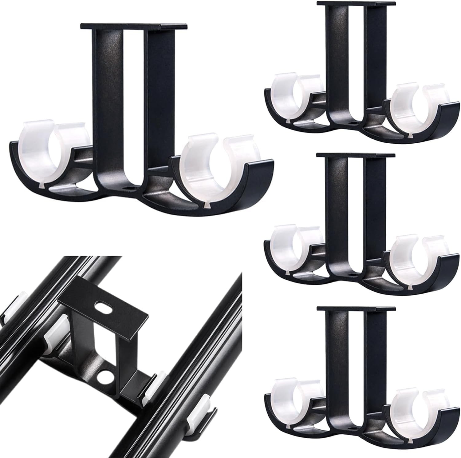 WSAMJIN 4 Pcs Black Curtain Rod Brackets, Double Curtain Rod Holder Aluminum Al