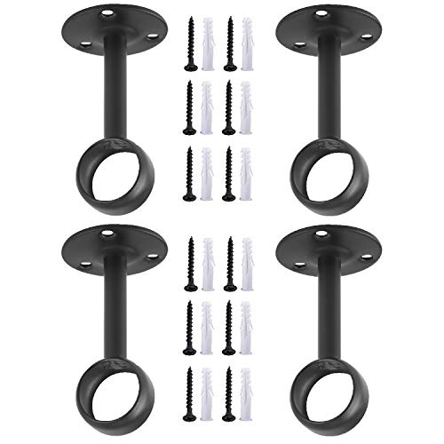Anndason Curtain Rod Ceiling-Mount Bracket Curtain Rod Brackets Curtain Rod Holders (4 PCS, Black)