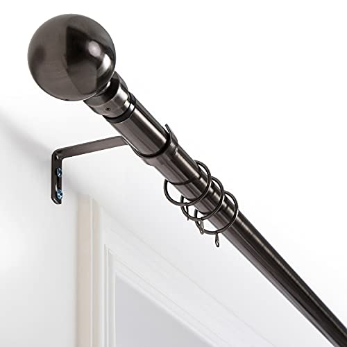Aspire Homeware Curtain Poles Metal Plain Ball Extendable Curtain Pole 120 cm to 210 cm Black Nickel Adjustable Curtain Rod 28 mm Diameter with 60 mm Finials, Rings, Brackets, and Fittings Set