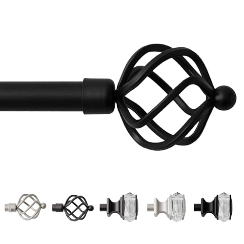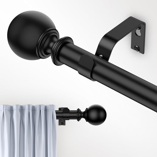 INFLATION Curtain Poles with Black Finials 76 to 157 cm, Frosted Black Curtain Pole with Brackets Fittings Set Window Poles for Living Room & Outdoor