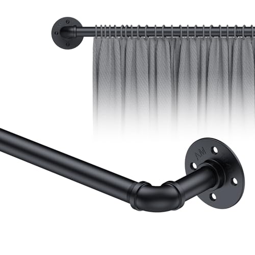 eSynic Industrial Curtain Rod 183-366cm, Extendable Wall & Ceiling Mounted Curtain Poles for Eyelet Curtains, Black Curtain Pole Metal for Bedroom Office Living Room Outdoor
