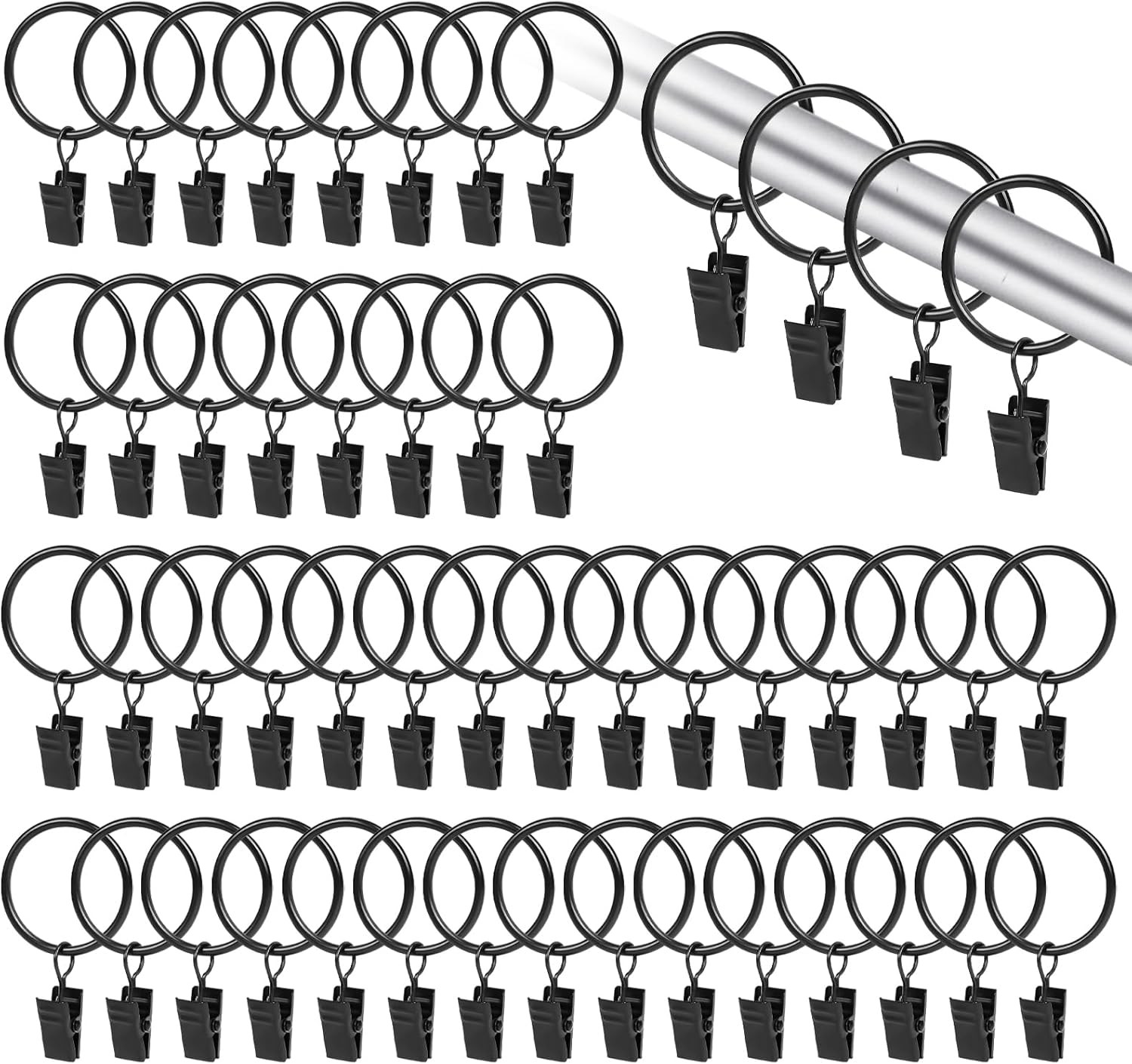 50 Pack Metal Curtain Rings with Clips, 32mm Black Curtain Pole Rings with Clip