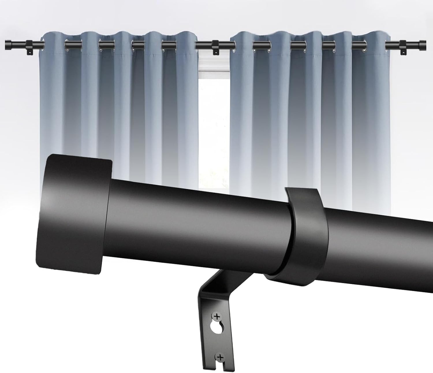 Ueuttiy Curtain Poles 40-116cm (16-46"), Extendable Black Curtain Pole for Eyelet Curtains, 26mm Diameter Metal Door Curtain Rod Includes Brackets and Fittings Set