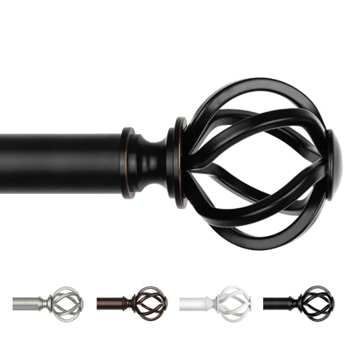 Black Curtain Pole 80 to 148 cm, USFOOK 22 mm Voile Curtain Poles for Eyelet Curtains, Decorative Curtain Rods for Windows, Living Room, Twisted Cage Finials