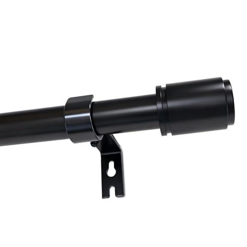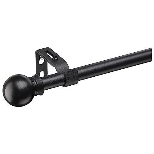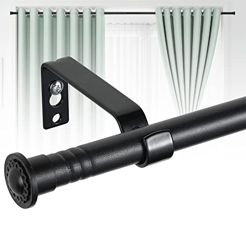 Curtain Poles for Eyelet Curtains Single Curtain Rod Black Curtain Pole with Adjustable Brackets and Round Finials for Living Room, Bathroom, Bedroom(33-59inch, Black)