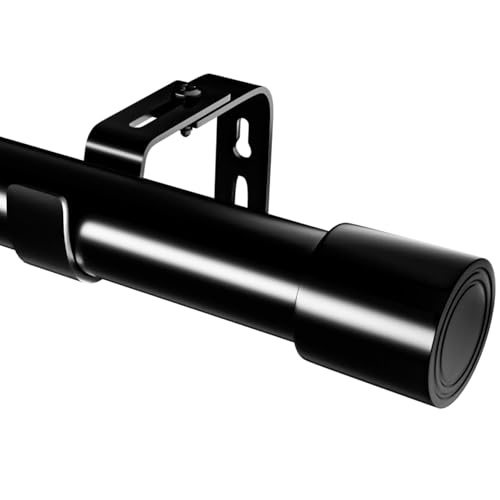 Ueuttiy Curtain Poles 40-300cm (16-120"), Extendable Black Curtain Pole for Eyelet Curtains, 26mm Diameter Metal Door Curtain Rod Includes Brackets and Fittings Set