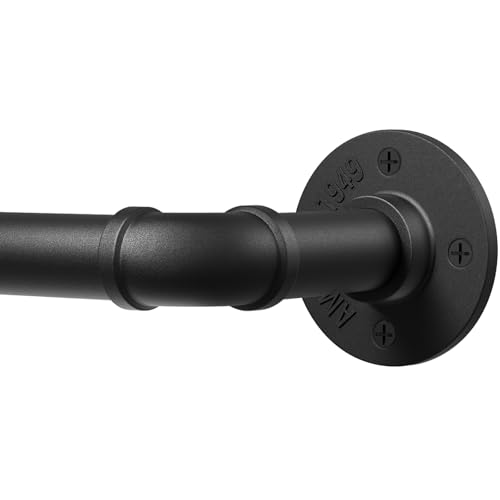 DEFYNEE Curtain Poles for Eyelet Curtains, 80-305cm Black Curtain Pole Metal 25mm Diameter Adjustable Industrial Curtain Rod, Indoor/Outdoor Curtain Rails for Bedroom, Living room, Office
