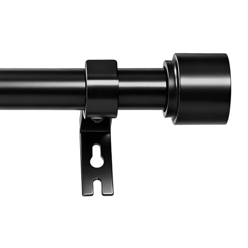 Deconovo 25mm Black Curtain Pole for Windows, Basics Adjustable Curtain Rods Extendable with Brackets, Extension Curtain Rods for Living Room, 76-365cm, Black