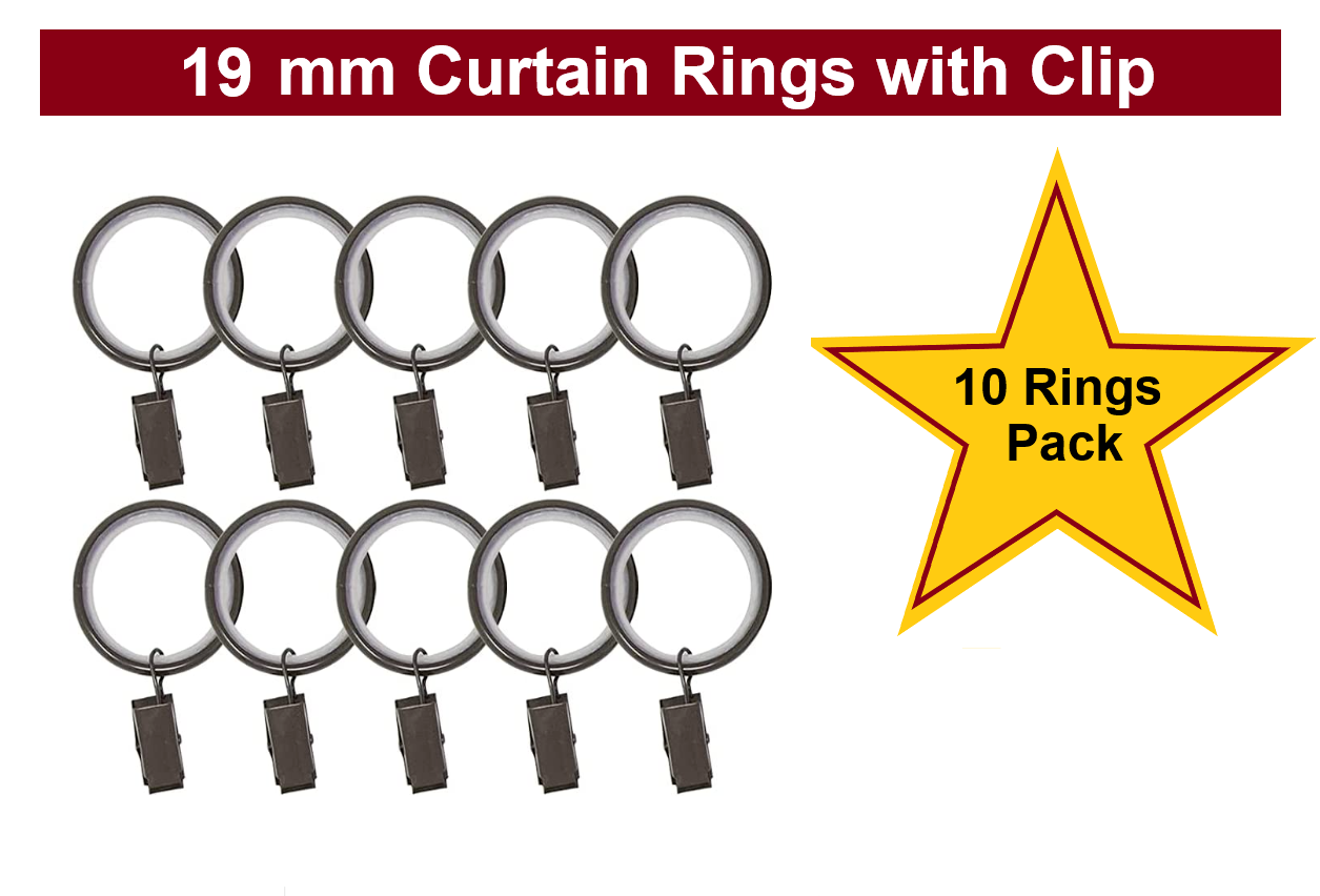 10 Rings x 16-19 mm Black Curtain Pole Rod Hooks With Hanging Clips