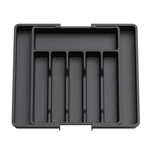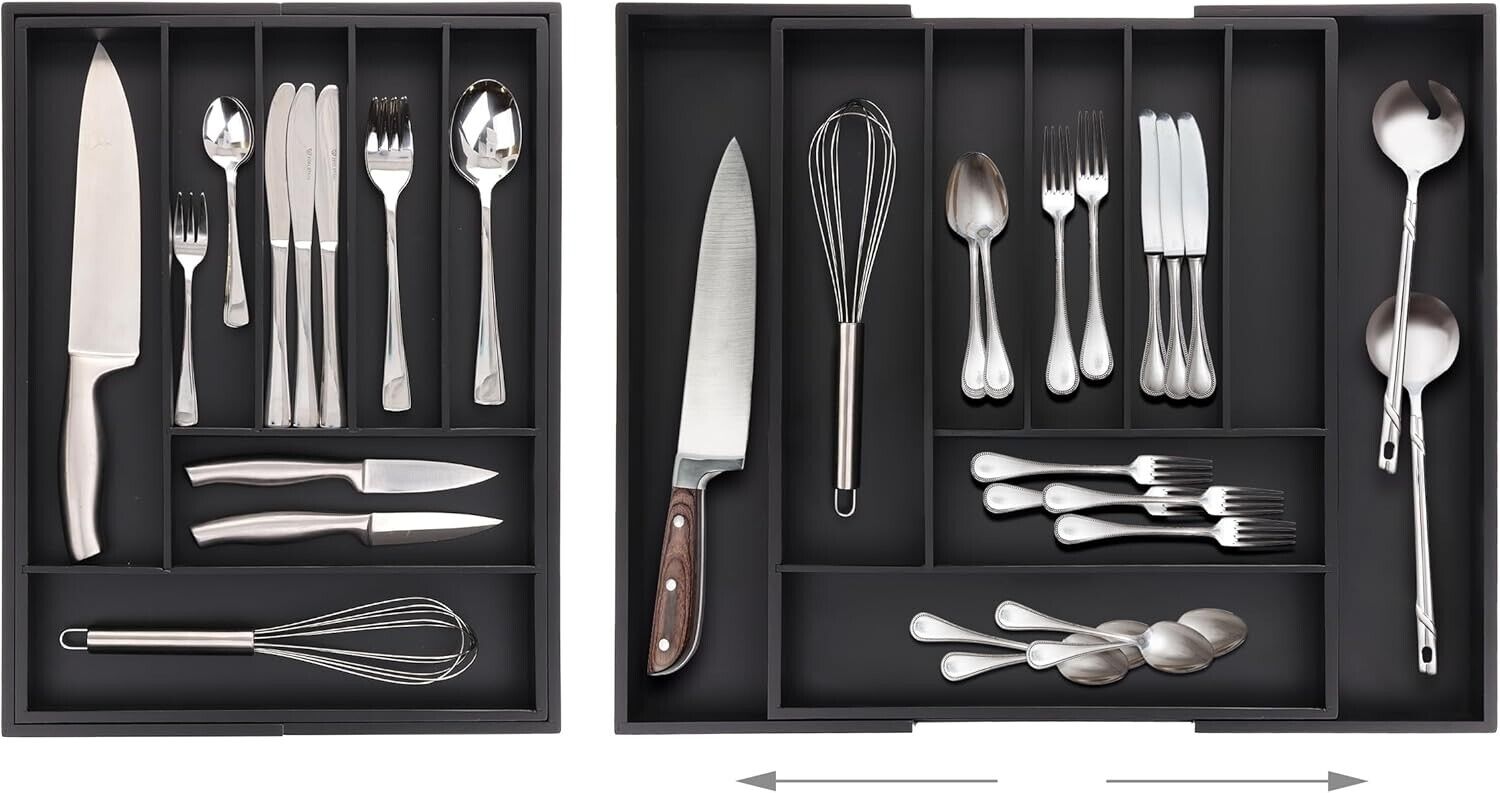CUDVOLHTU Silverware Drawer Organizer Expandable Utensil, Tray For Flatware And Cutlery Holder, Black Cutlery Organiser