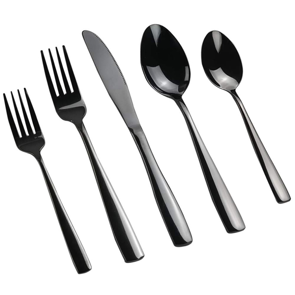 (Black) Stainless steel cutlery knife, fork and spoon 30-piece set