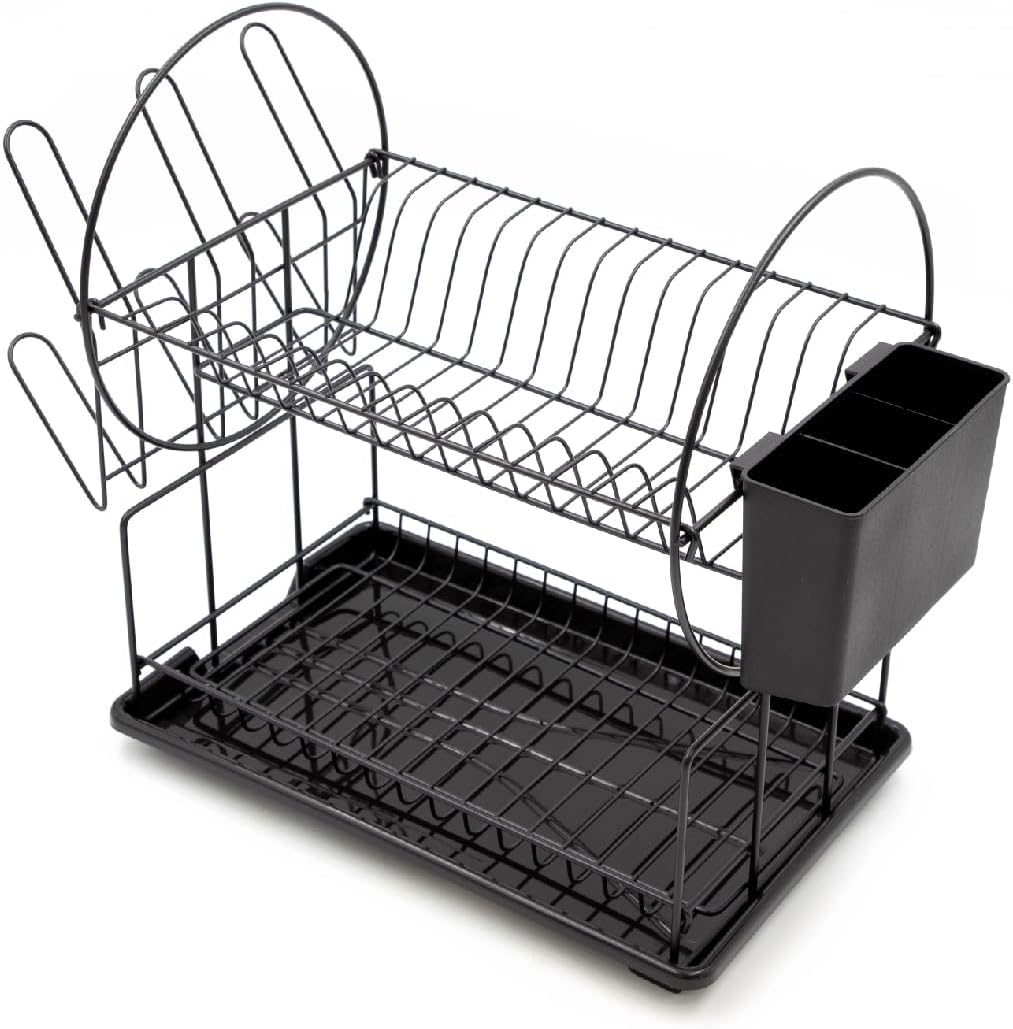 69159 2 Tier Dish Drainer Rack/Black Detachable Cutlery & Utensils Holder and Re