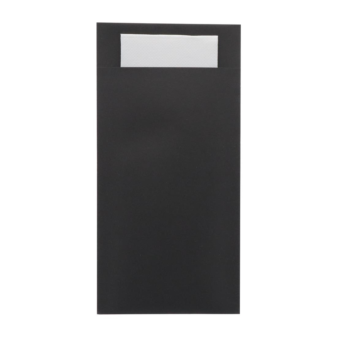 Europochette Black Cutlery Pouch with White Napkin (500 Pack)