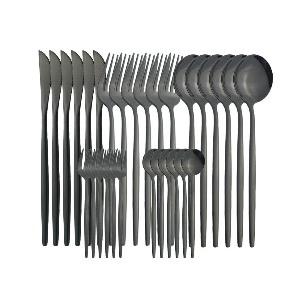 (black) Cutlery Set 24 Piece Stainless Steel Flatware Boxed Matte