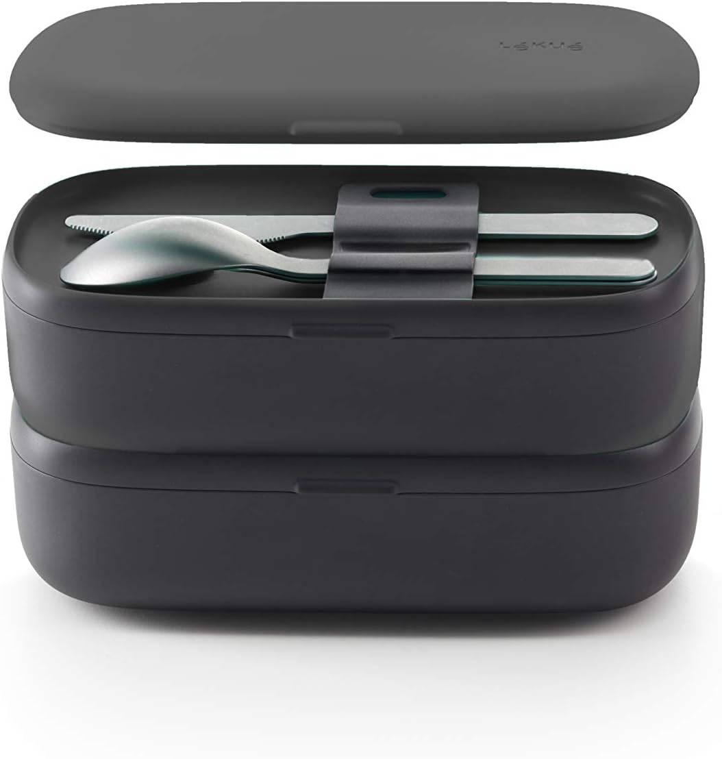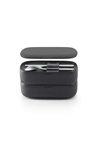 Lékué Lunch Box with Cutlery, Black, 19x10x11 cm