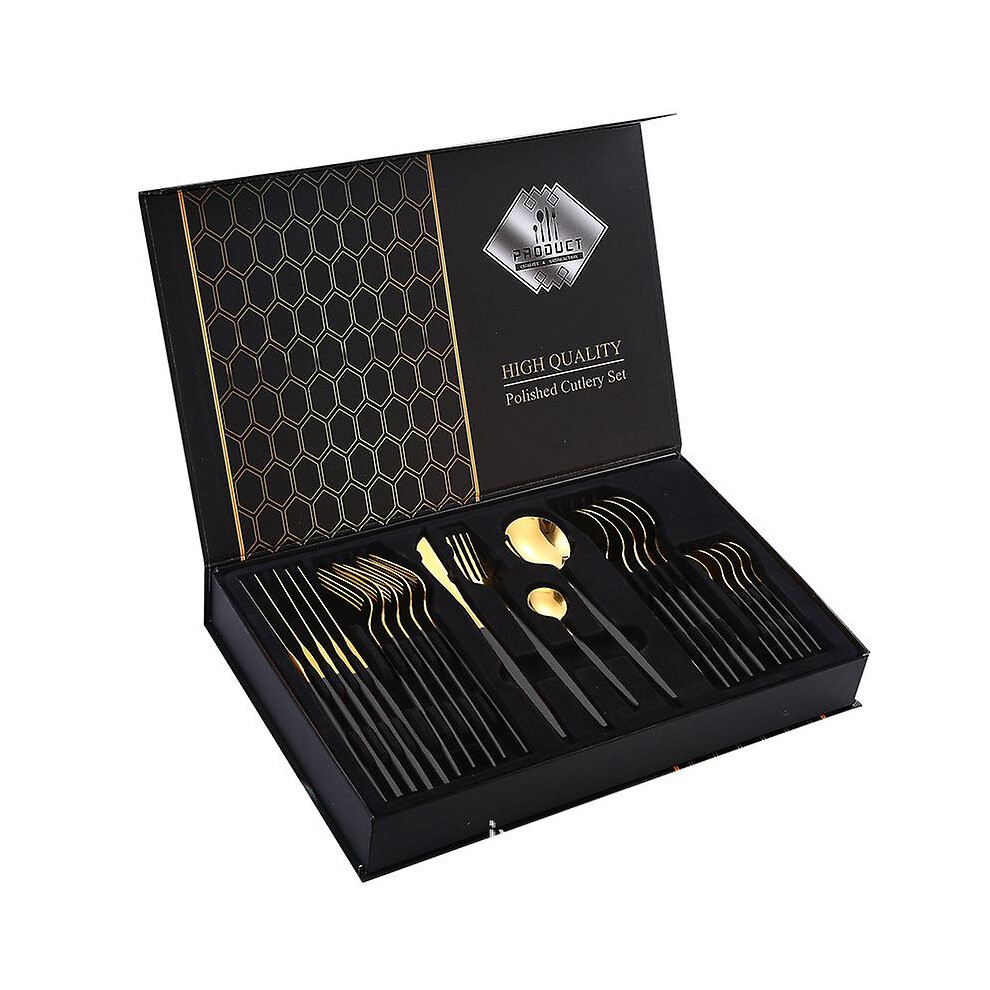 (Black gold) Cutlery Set 24 Piece Stainless Steel Flatware Boxed Matte