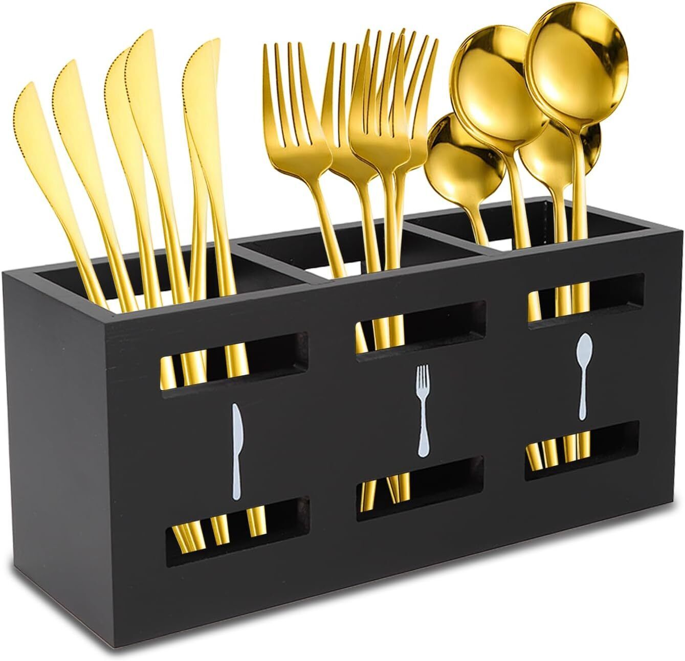 Gzsekken Kitchen Utensils Holder Black Utensil Holder Cutlery Holder 3 Compartm