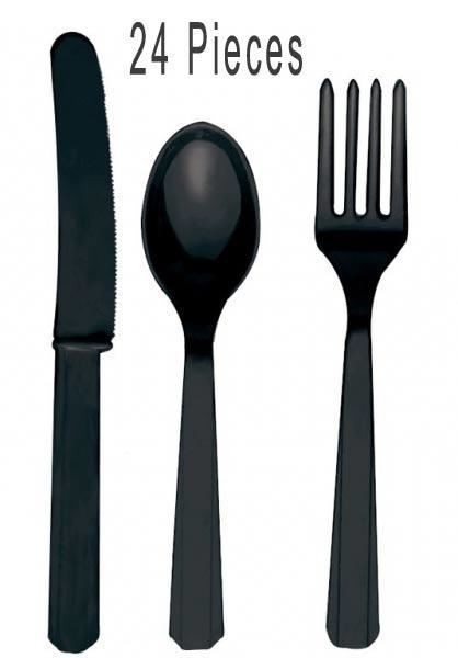 BLACK CUTLERY ASSORTMENT - PK24
