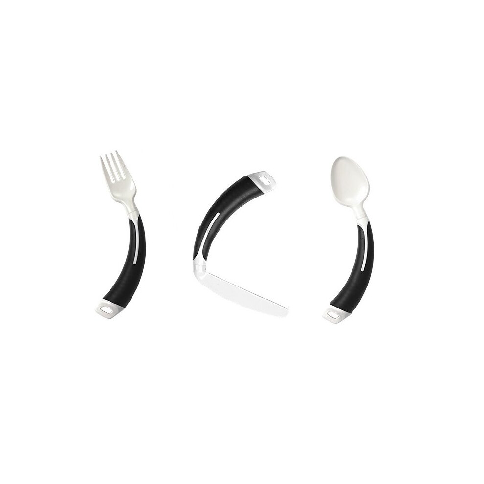(Full Set Right Hand, Black) Curved Cutlery - Light Weight Angled Adult Cutlery
