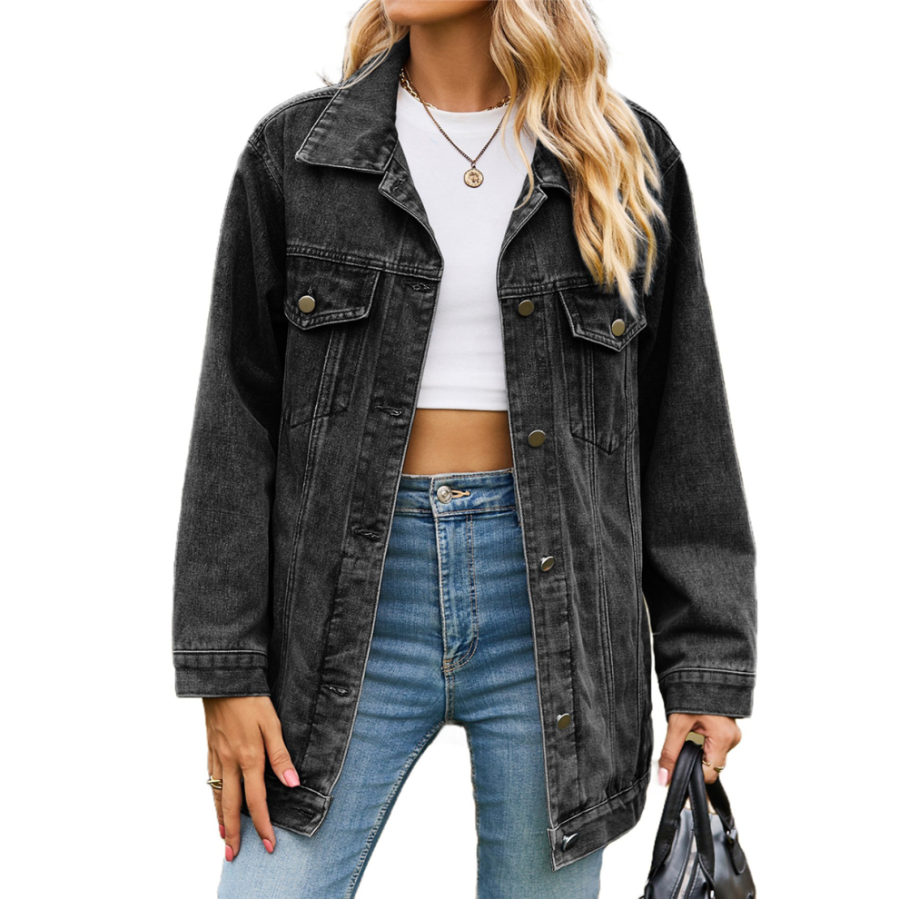 (XL, Black Grey) Jean Jackets for Women Trendy Button Down Denim Trucker Long Sleeves Frayed Hem Shacket Jacket Light Blue S