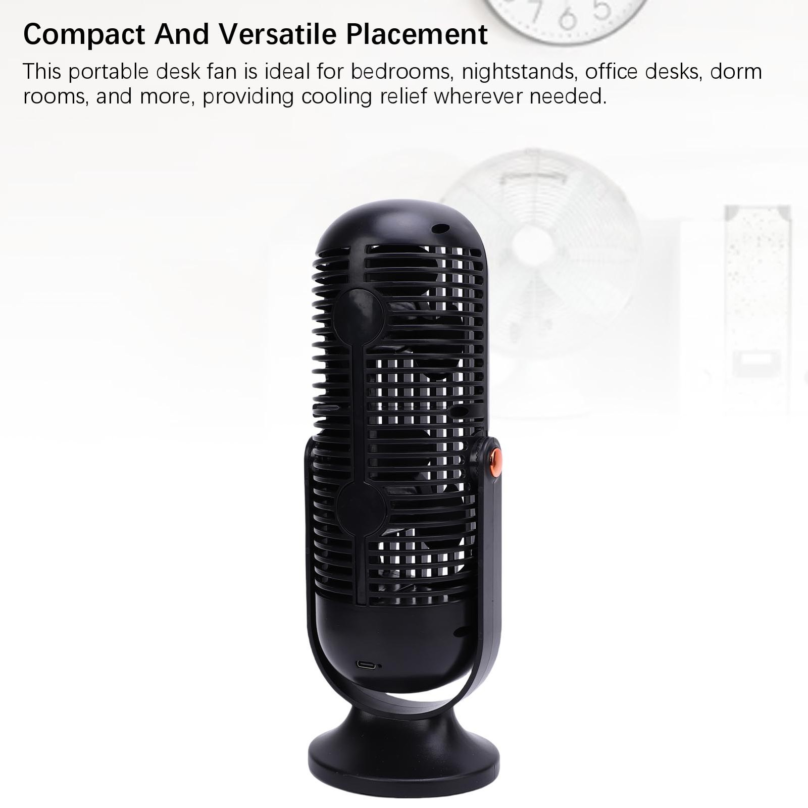 GreenZech (Black) Adjustable Angle Desk Fan DC5V 3-Gear USB Charging Mini Black/White For Outdoor Travle Camping