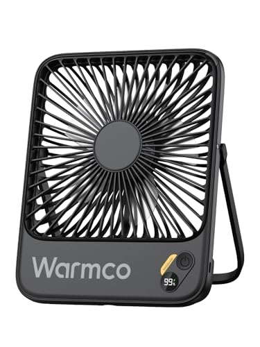 Warmco 10000mAh Portable Desk Fan 7-inch, [10-24H Runtime] Ultra-Slim Digital Display Small Battery Operated Fan for Travel, Bedroom, Camping, Cruise, Camping, Outdoor Black