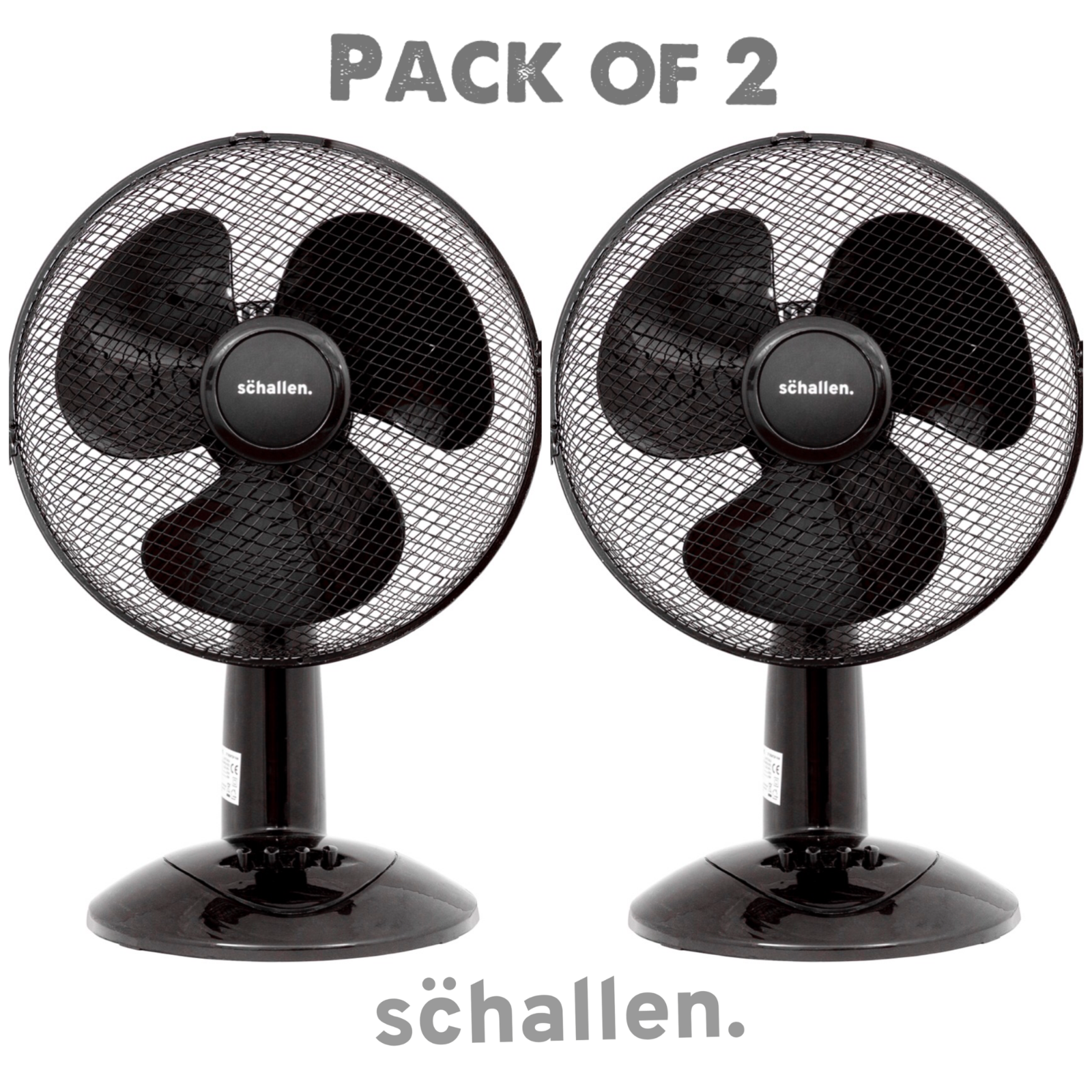 2 x Schallen 12" 3 Speed Oscillating Worktop Desk Table Air Cooling Fan - BLACK