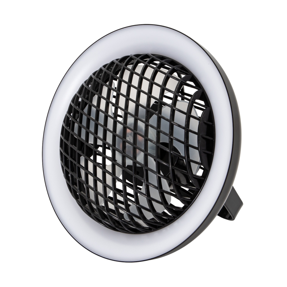 Black Rechargeable 3 Speed Desk Fan with LED Dimmable Ring Light by Happy Hom...