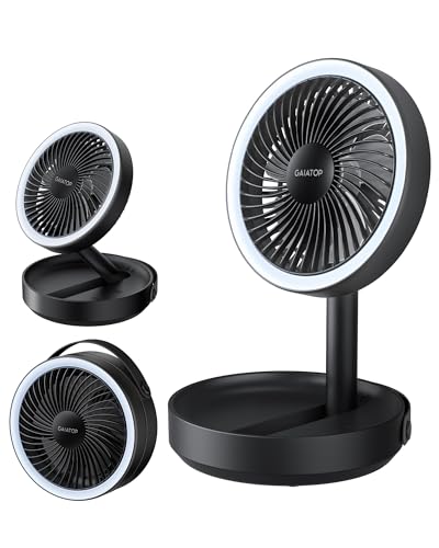gaiatop Foldable Small Desk Fan, 6000mAh Battery Portable Desktop Fan, with LED Night Light, USB Rechargeable, Bedroom Office Camping Travel Essentials, Summer Gifts for Women Men Teens, 6.8in Black