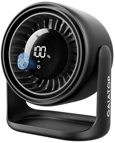 gaiatop Desk Fan with Touch Control, 4000mAh Battery, 5 Speeds Ultra Quiet with LED Display, 90° Tilt, 7.7 In USB-C Rechargeable Desktop Essential for Bedroom Dorm Room Home Office, Black