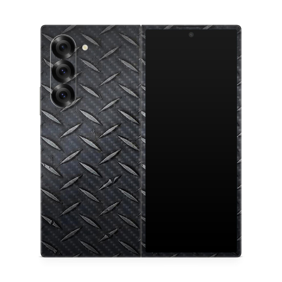 Carbon Fiber Phone Skin Compatible with Samsung Galaxy Z Fold 6 - Black Diamond Plate - Premium 3M Vinyl Protective Wrap Decal Cover - Easy to Apply |