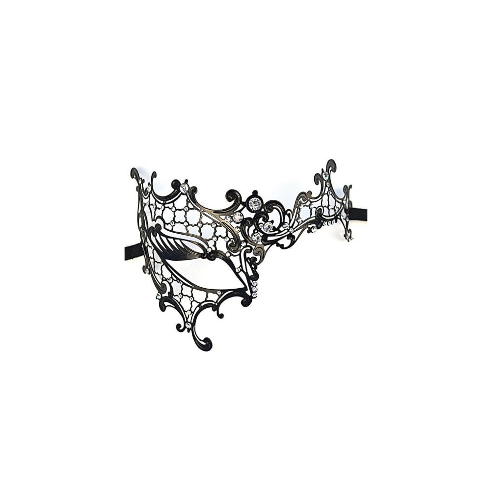 Black Half Face Mask for Adults, One Eye Metal Masquerade Mask with Diamond Trim for Carnival and Party Performance Prop