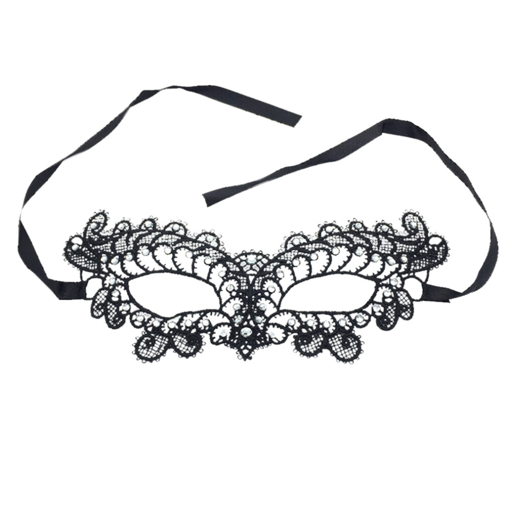 Women's Classic Lace Eye Mask Half Face With Diamond For Halloween Black