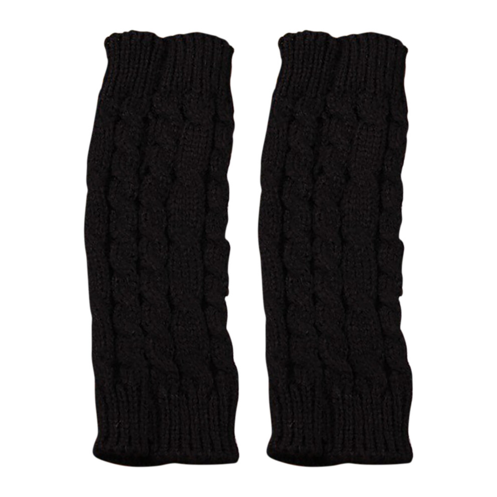 (Black) Women Woolen Knitted Diamond Half-Finger Warm Outdoor Cycling Gloves Ski Gloves Mittens Men