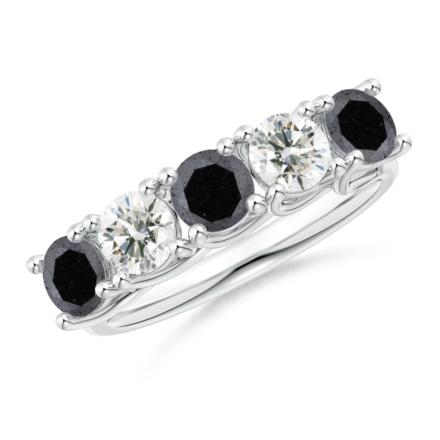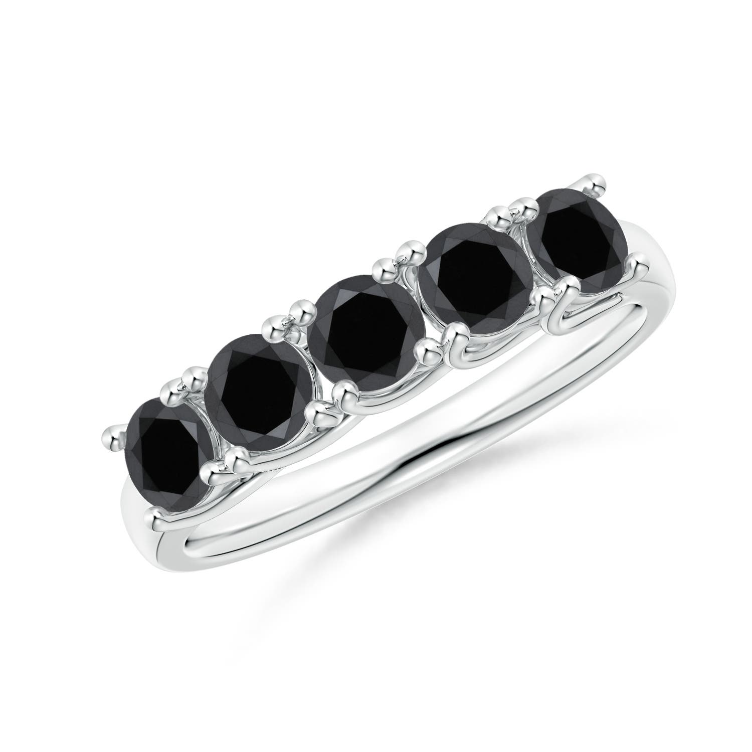 Angara 0.99 Carat Half Eternity Five Stone Enhanced Black and White Diamond Wedding Ring in Platinum
