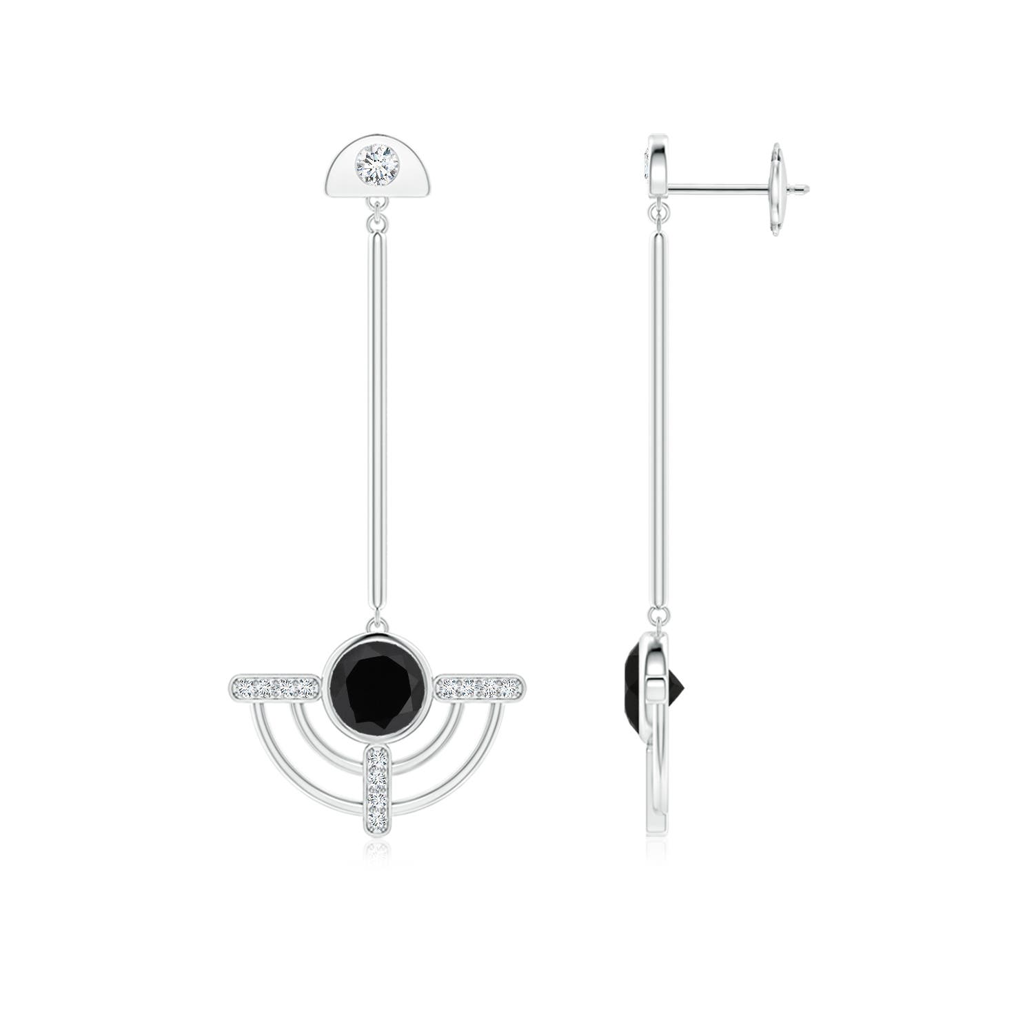 Natori x Angara 1.4 Carats Infinity Half Concentric Circle Black Onyx Dangle Earrings with Diamond Accents in 14K White Gold