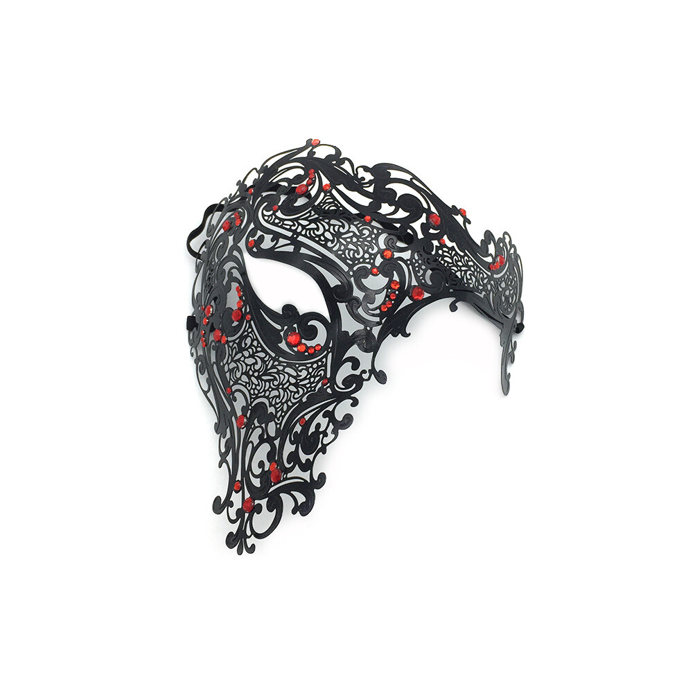 (Black - Red Diamond) Halloween Props Masquerade Half Face Men's Metal Diamond-set Iron Mask