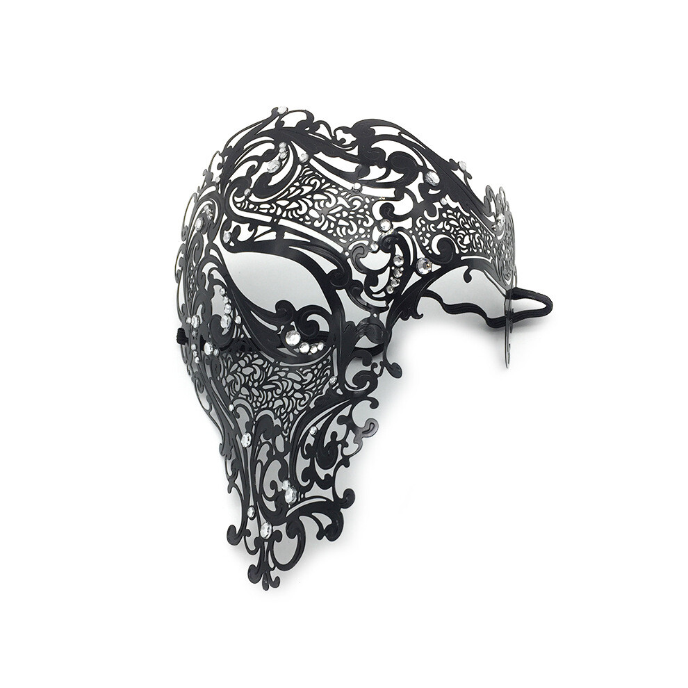 (Black-white diamond) Halloween Props Masquerade Half Face Men's Metal Diamond-set Iron Mask