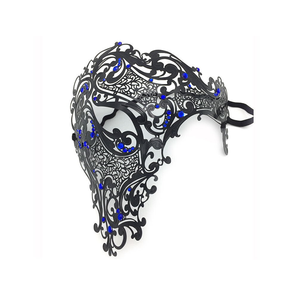 (Black-Blue Diamond) Halloween Props Masquerade Half Face Men's Metal Diamond-set Iron Mask