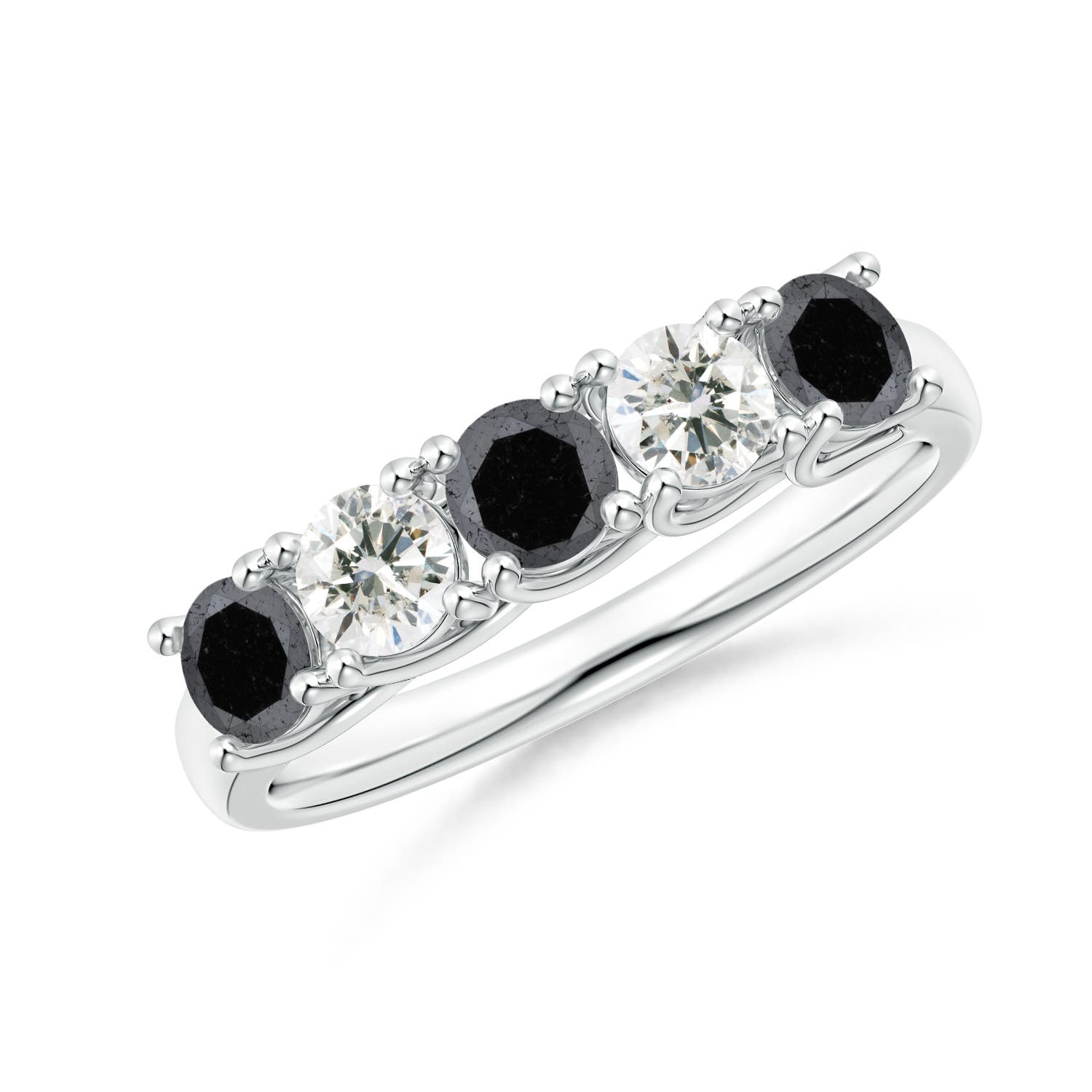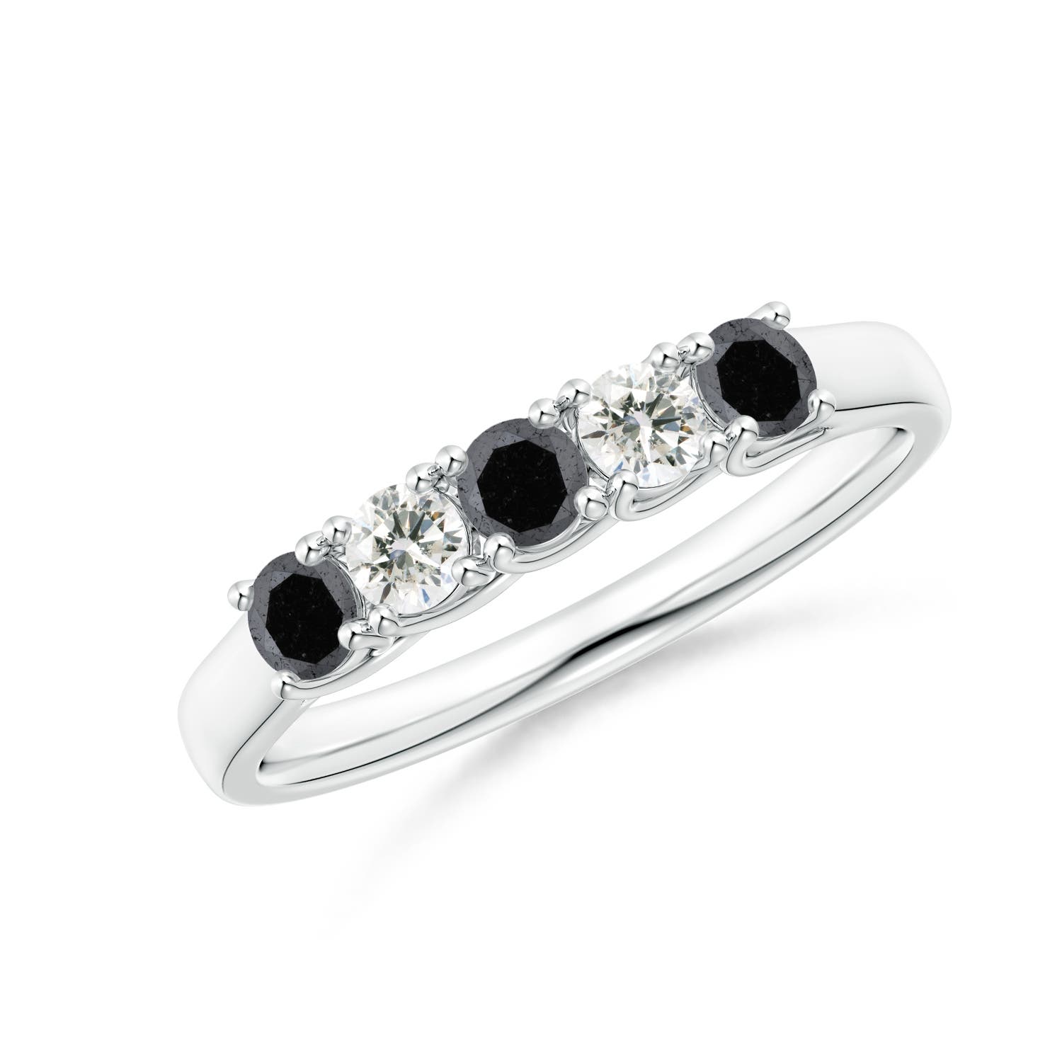 Angara 0.33 Carat Half Eternity Five Stone Enhanced Black and White Diamond Wedding Ring in Platinum