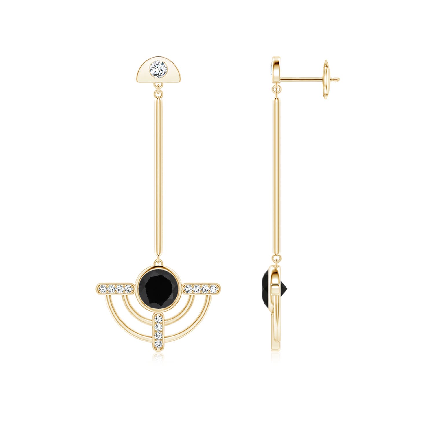 Natori x Angara 1.4 Carats Infinity Half Concentric Circle Black Onyx Dangle Earrings with Diamond Accents in 9K Yellow Gold