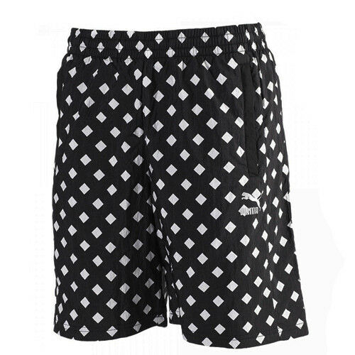 Puma Alife ARC All Over Diamond Print Mens Elastic Shorts Black 568203 01 DD69 Textile - Size Small
