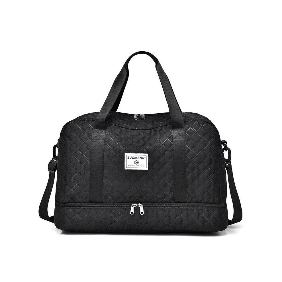 (Black) Large Gym Large Capacity Checkered Diamond Travel Casual Handbag Fashionable