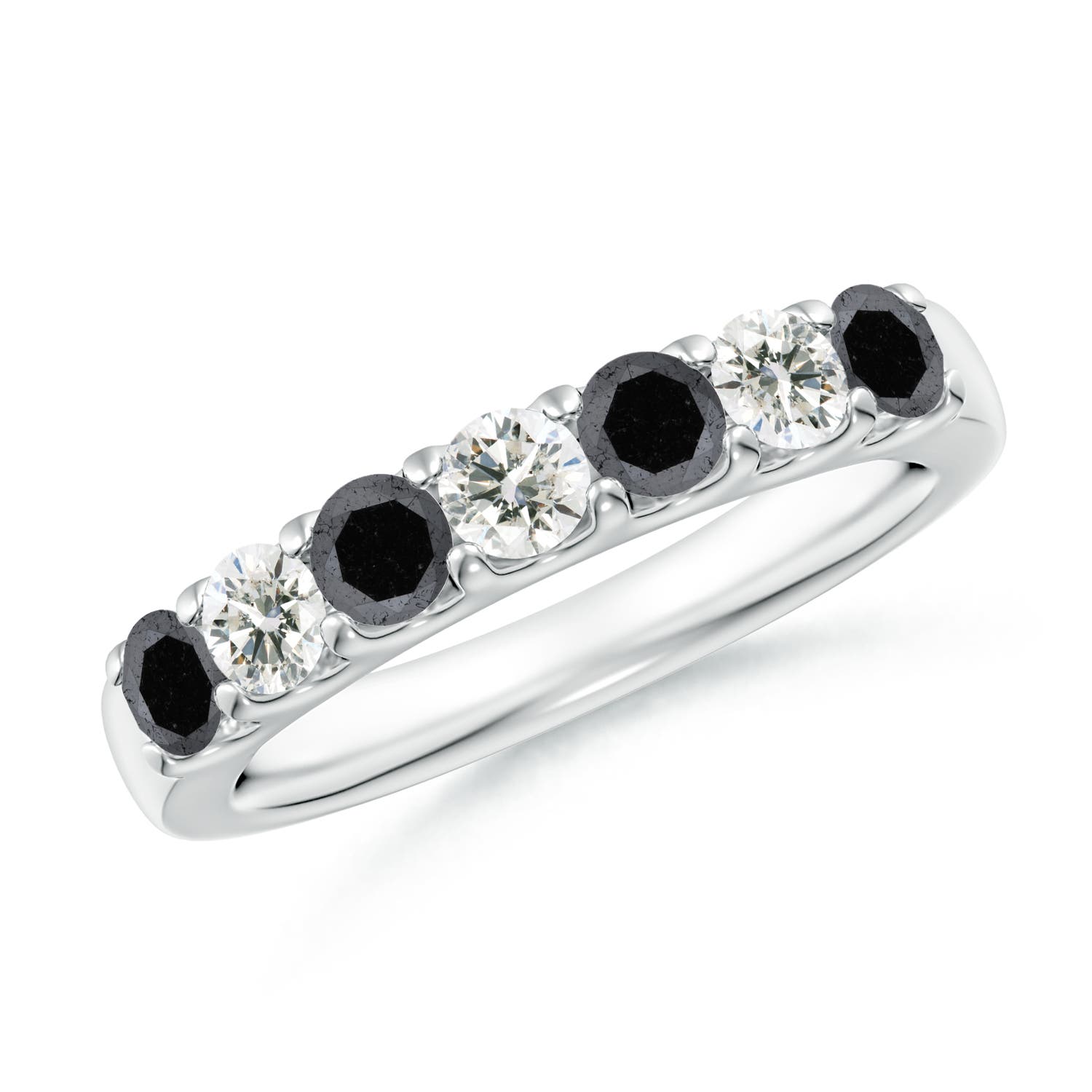 Angara 0.27 Carat Prong-Set White and Enhanced Black Diamond Half Eternity Ring in 14K White Gold