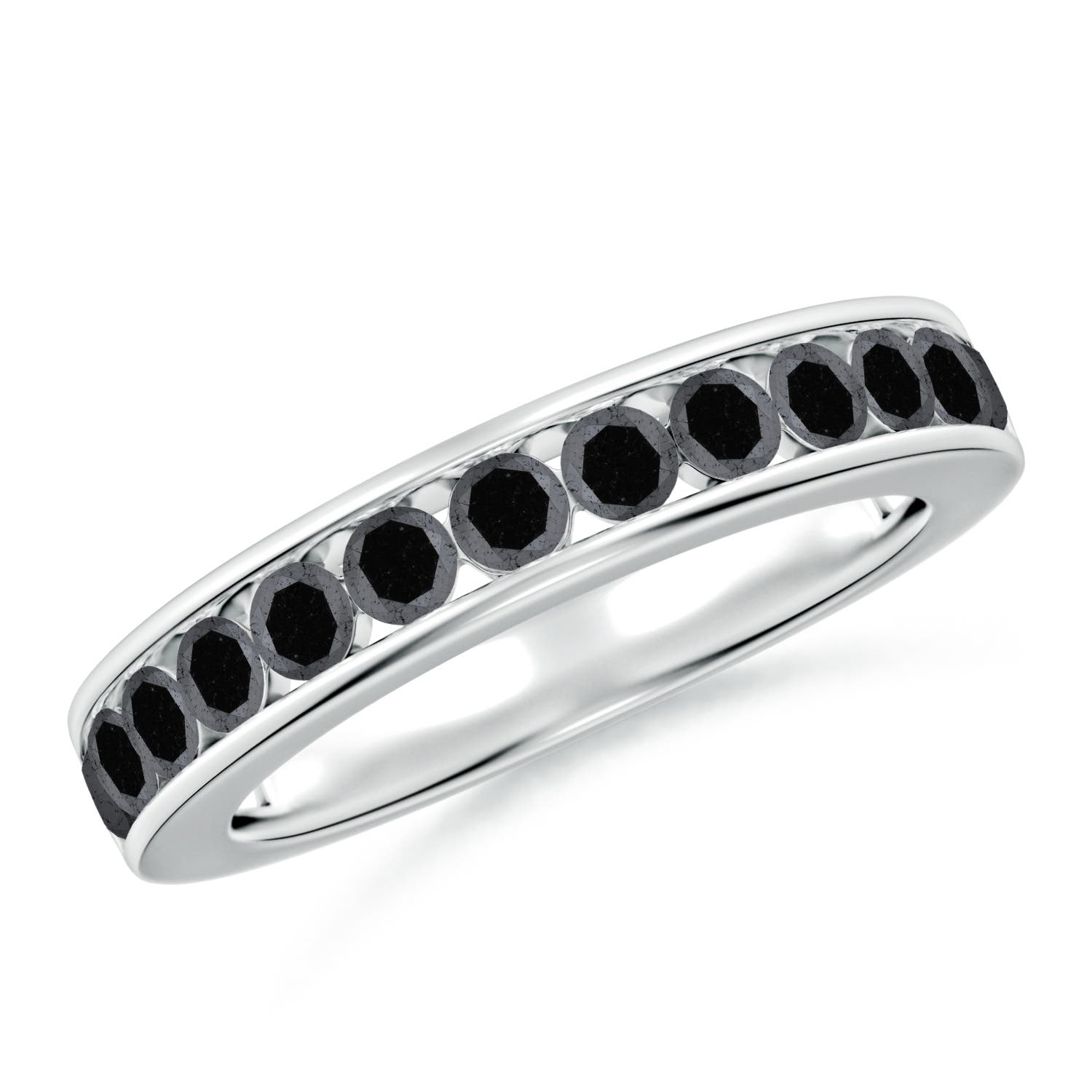 Angara 0.59 Carat Channel Set Round Enhanced Black Diamond Half Eternity Band in 18K White Gold