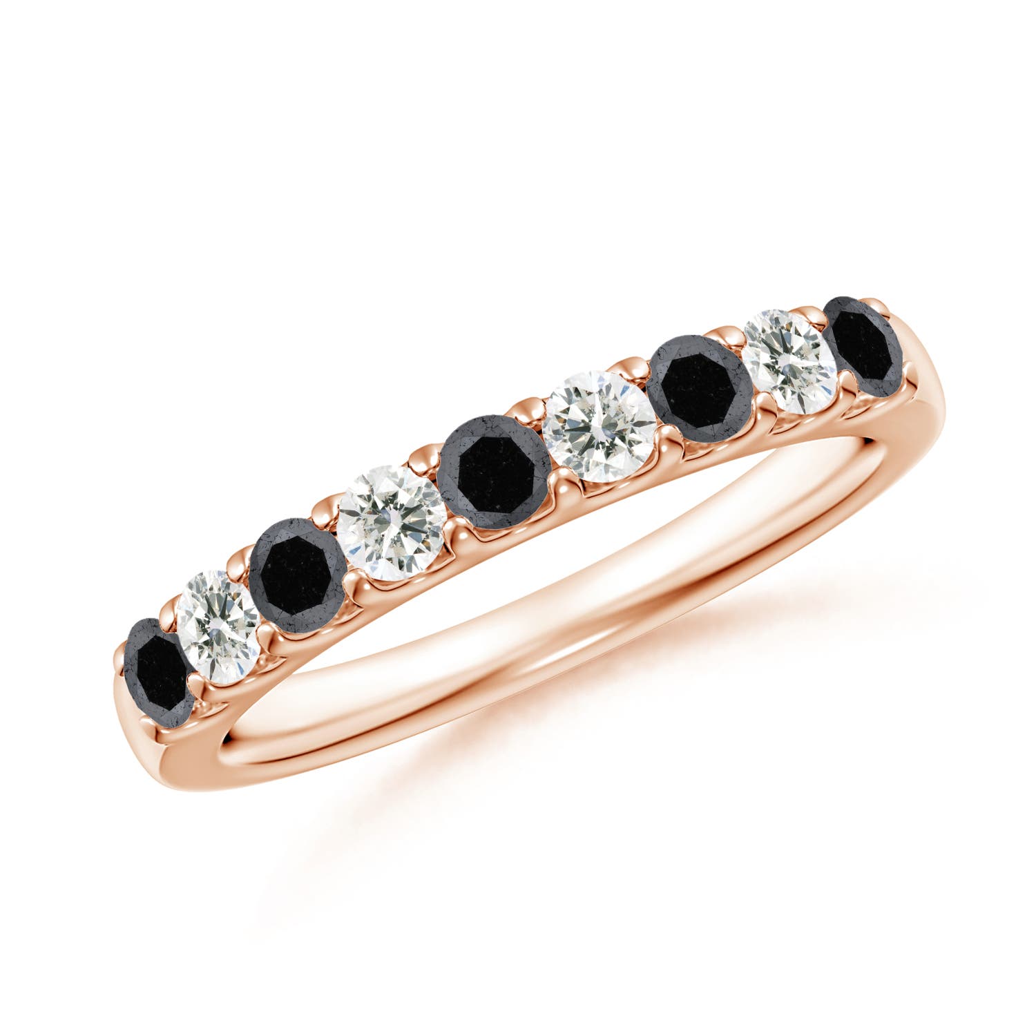 Angara 0.27 Carat Prong-Set White and Enhanced Black Diamond Half Eternity Ring in 14K Rose Gold
