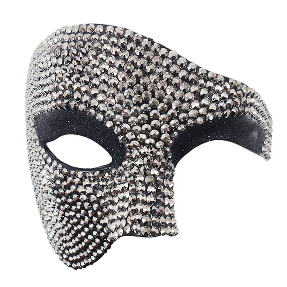 (Black-white diamond) Halloween Props Masquerade Half Face Men's Metal Diamond-set Iron Mask