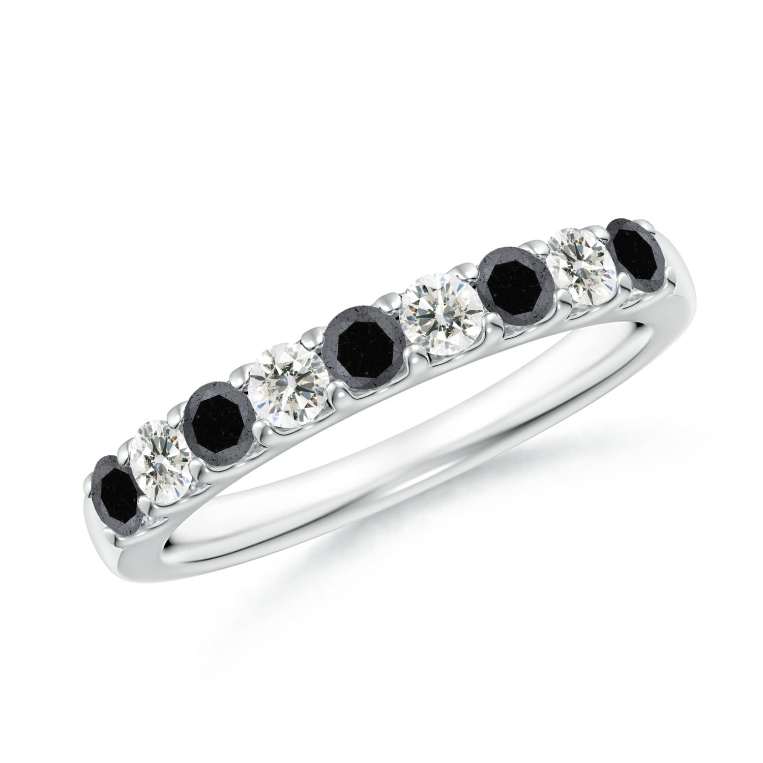 Angara 0.27 Carat Prong-Set White and Enhanced Black Diamond Half Eternity Ring in 9K White Gold