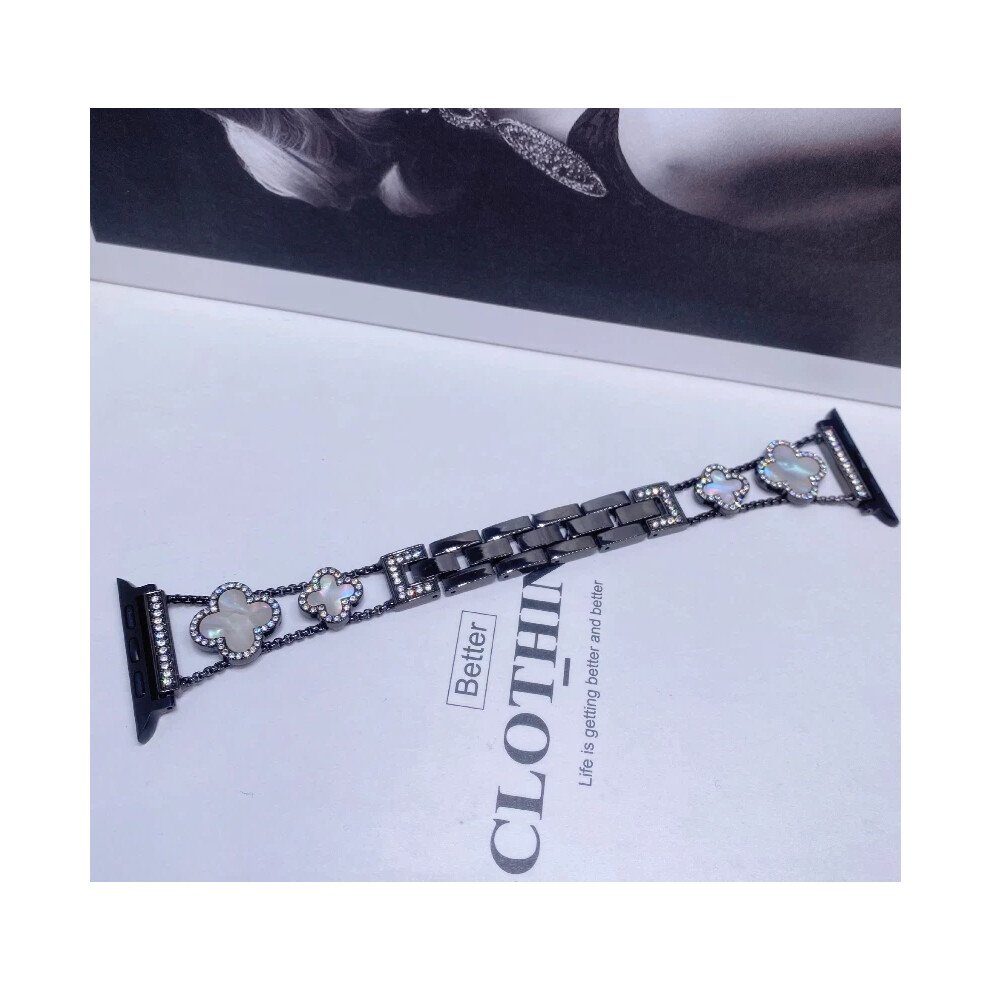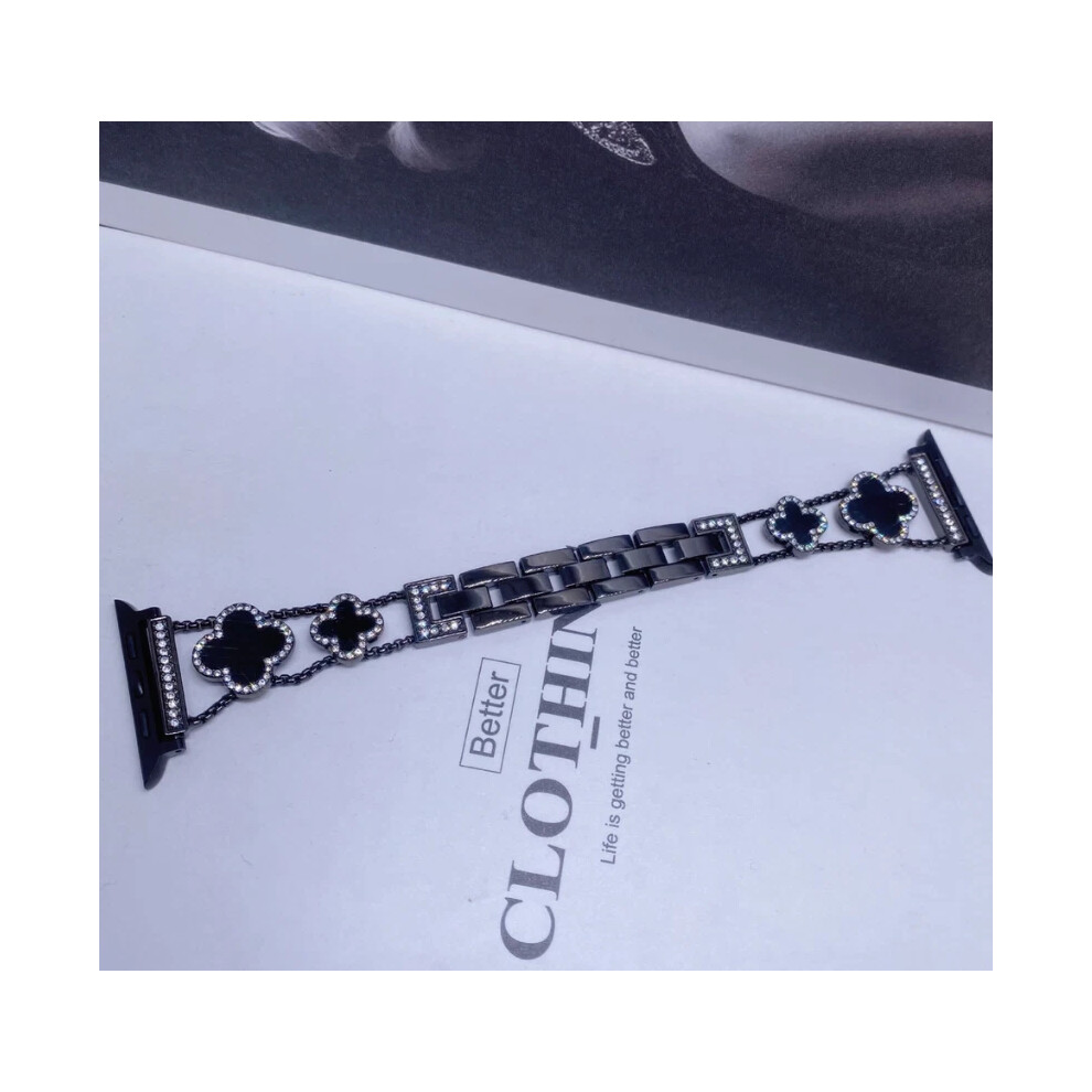 (Black+Black, 38/40/41MM) For i Watch1-8 Fashionable Diamond Inlaid Four-Leaf Clover Metal Watch Strap Hot