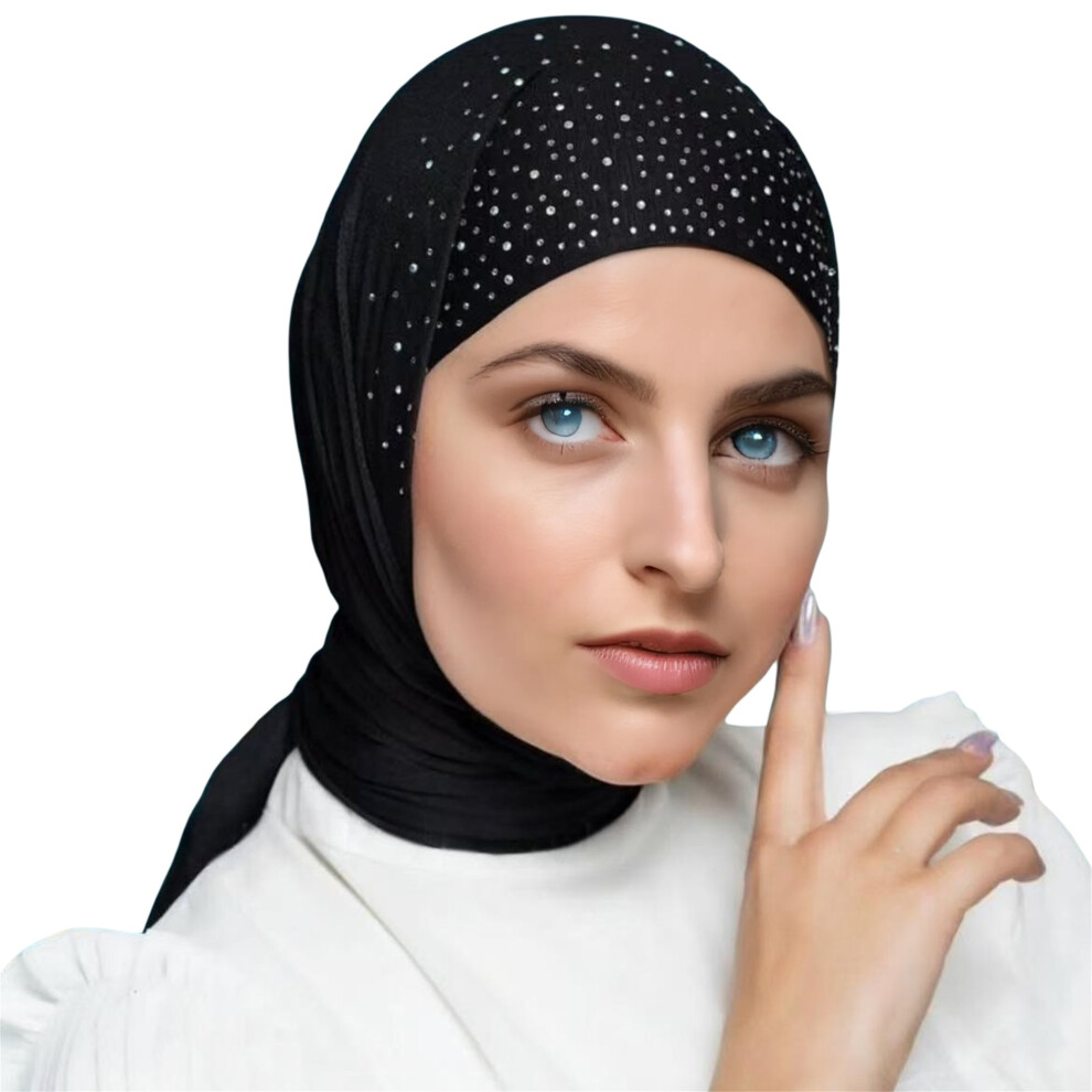 (150cm*80cm, Black) Women's Solid Color Headscarf Hot Stamping Diamond Wrapped Turban Breathable Scarf Shawl